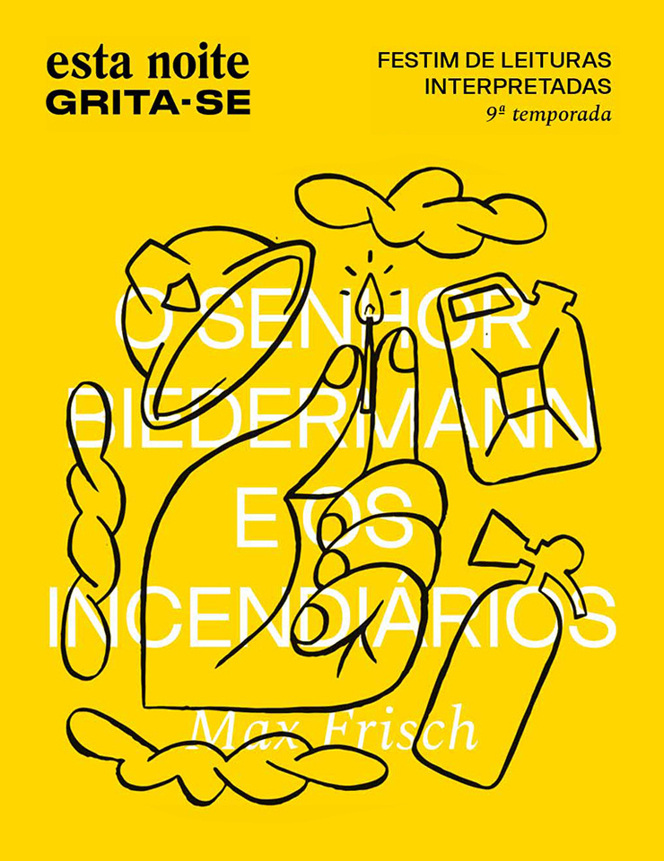 "O Senhor Biedermann e os Incendiários" de Max Frisch é uma mordaz caricatura dos valores instalados na sociedade burguesa, onde, debaixo do verniz das boas intenções, a desigualdade impera. O comerciante Biedermann, convicto defensor do status quo e do seu posto social, vive com a esposa e a criada numa cidade alarmada por diversos incêndios que têm consumido prédios e bairros inteiros. Certo dia, recebe a visita de dois estranhos homens que, insidiosamente, se vão instalando no sótão de sua casa, perante a incredulidade do anfitrião, preso num labirinto de ingenuidade e condescendência patriarcal. Trata-se de um texto singular do autor suíço do pós-guerra, que viria a publicar mais tarde um epílogo para a edição alemã, motivado pela reação do público suíço, que terá visto na peça um alarme anti-comunista. O epílogo, em jeito de sequela, retrata um inferno em greve por excesso de arraia-miúda, enquanto o céu concede indultos aos poderosos — e serve para sublinhar ainda mais a originalidade e a relevância do texto principal.