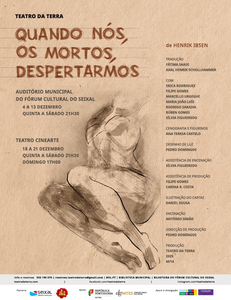 Texto: Henrik Ibsen | Interpretação: Erica Rodrigues, Filipe Gomes, Marcello Urgeghe, Maria João Luís, Rodrigo Saraiva, Rúben Gomes, Sílvia Figueiredo | Tradução Fátima Saadi e Karl Henrik Schollhammer | Encenação: António Simão | Cenografia e Figurinos: Ana Teresa Castelo | Desenho de Luz: Pedro Domingos | Assistência de Encenação: Sílvia Figueiredo | Ilustração do Cartaz: Daniel Sousa | Assistência de Produção: Filipe Gomes, Carina R. Costa | Direcção de Produção: Pedro Domingos | Produção: Teatro da Terra 2025 M/14