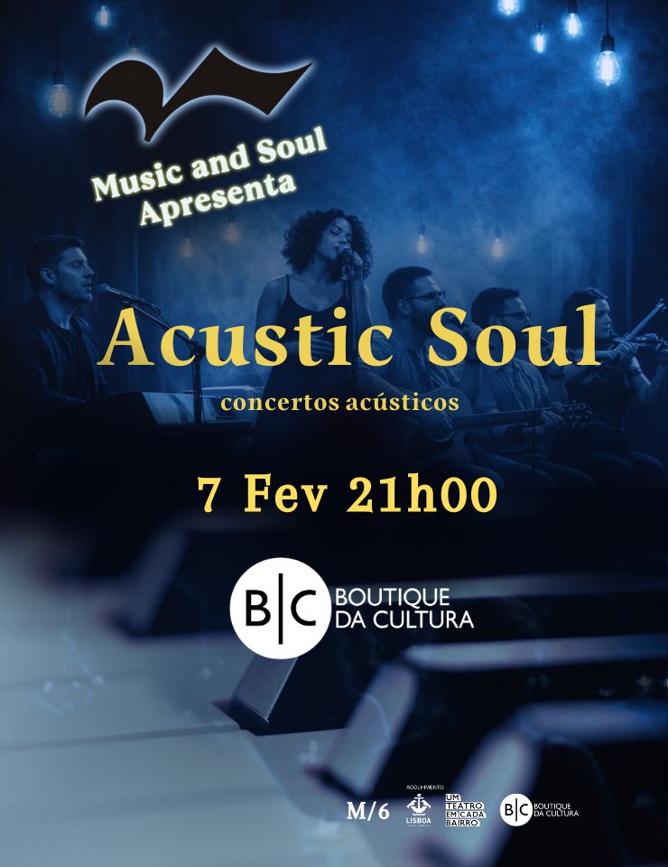 Acustic Soul é uma série de concertos que reúne alunos e professores da Music and Soul – formação de artistas, num encontro musical que celebra a diversidade de estilos e linguagens. Cada concerto apresenta um repertório diferenciado, que percorre vários universos musicais, do erudito ao pop rock, em interpretações próprias e num registo maioritariamente acústico. Um espetáculo intimista e versátil, que evidencia a identidade artística e a qualidade musical de cada elemento em palco.